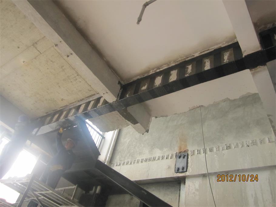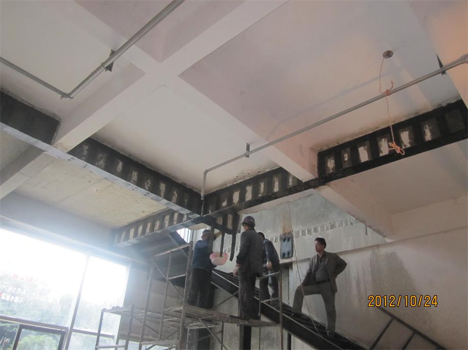 工行樂(lè)山分行沙灣支行辦公樓底層框架梁、柱碳纖維加固工程