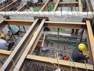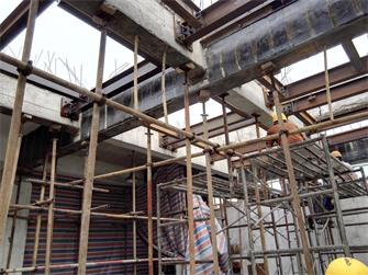 成都金開(kāi)生物工程有限公司發(fā)酵車(chē)間局部梁、板改造加固項(xiàng)目,原結(jié)構(gòu)體系為鋼筋混凝土框架結(jié)構(gòu)。因增加設(shè)備荷載并對(duì)相應(yīng)局部梁、板進(jìn)行加固修復(fù),使結(jié)構(gòu)達(dá)到安全狀態(tài),涵蓋了以下施工內(nèi)容:局部樓板拆除與恢復(fù)施工;新增板底鋼梁制作安裝施工;梁底、梁面粘鋼加固施工;梁底斜截面粘貼碳纖維加固施工;對(duì)局部阻礙部位建筑物待改造后進(jìn)行恢復(fù)工作;、完成施工區(qū)域范圍活載位移并搭設(shè)有效支撐進(jìn)行卸荷措施;