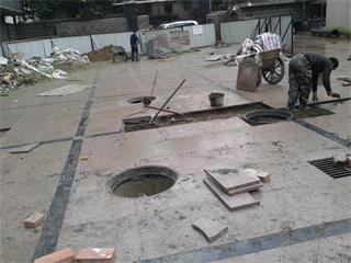 1.6、沉降地面混凝土拆除; 1.7、沉降土方挖掘; 1.8、建渣及土方外運; 2、本室外管網(wǎng)更換及地面恢復(fù)具體包括內(nèi)容如下: 2.1、施工現(xiàn)場安全打圍設(shè)施(使用架管支撐,采條布作圍護); 2.2、局部地面花崗石及混凝土地面與其它阻擋施工部分建筑物拆除; 2.3、局部連砂石的回填; 2.4、原污水(雨水)檢查井更換成新的鋼筋混凝土檢查井; 2.5、原污水(雨水)混凝土管更換成新的雙壁波紋管; 2.6、施工過程中,破壞的地面花崗石塊料進行恢復(fù) 2.7、局部土方挖掘及其它零星建渣清運; 附現(xiàn)場施工過程記錄照片圖